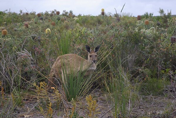 Not long after we see a roo at the side of the road. The coastal scenery is nice although we still have overcast skies threatening to rain.