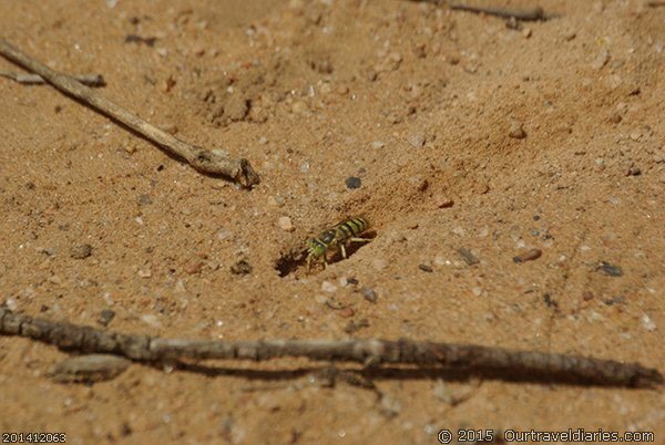 We?ve also seen some interesting insect life and took pleasure in watching wasps dig out holes in the ground then close themselves in, pop out again some time later and repeat the process. There are what we think are yellow striped wasps and black wasps; it is amazing – they all seem to know whose hole is whos.