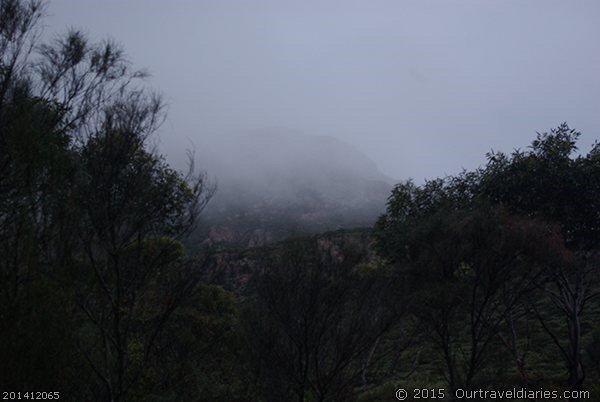 We wake up early today and find Mt Ragged is covered in a low mist, it a lovely sight. I?m feeling a bit better so we?re going to pack up and head to Balladonia and enjoy a hearty meal at the roadhouse. We’ll go via the Balladonia Road past Pine Hill, Deralinya and Nanambinia Homesteads, a distance of approx 120kms.