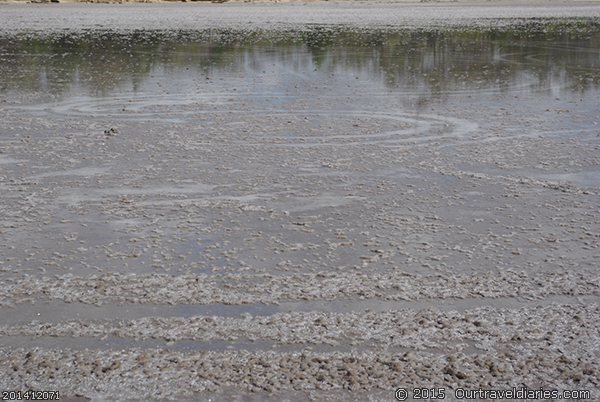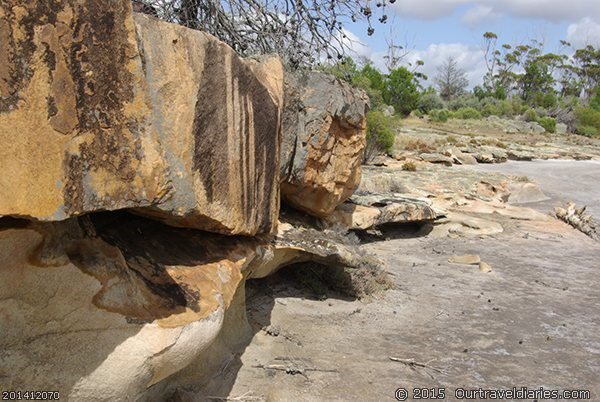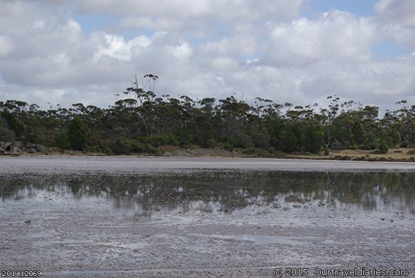 As we continue on toward Balladonia we come across a salt lake ( there are lots out this way ) The lake itself is quite scenic and has some water in it from recent rains. Again we find ourselves disappointed at the irresponsible actions of other travelers ( probably 4Wders ). They had turned the salt lake into an ice skating rink with the evidence clearly visible through the water. These scars will take years to fade and for the bed of the salt lake to recover. Really guys ? n – gals, grow up and have some respect for the land, environment and ecosystem or your grandkids? generation will be banned from these areas ? if you haven?t destroyed it first.
