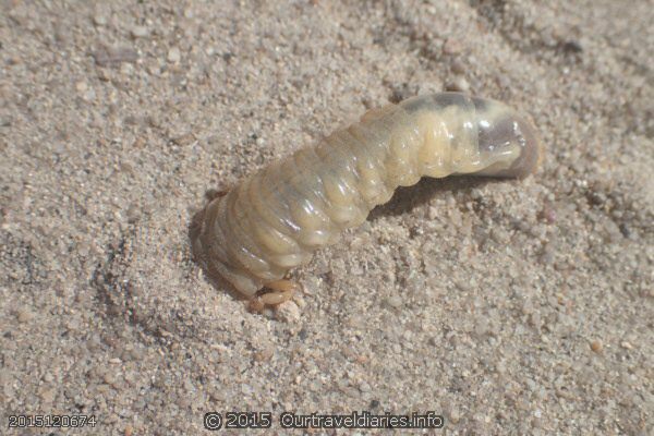 - A Scarab Beetle Larva burrowing on the road out of Fanny Cove camp ground (aka curl grub)