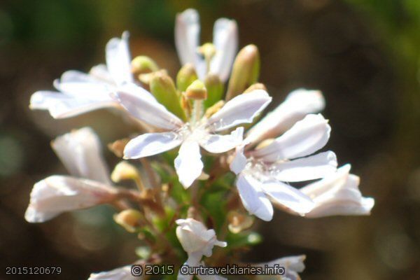 Shoal Cape is a short drive from Fanny Cove. The track to Shoal Cape is littered with picturesque views of the Southern Ocean which change around every corner. Once at Shoal Cape there are a couple of camping spots and a small car park. A short walk down the steps takes you to a viewing platform and then down to the beach. The viewing platform offers a great view of the Southern Ocean which was a bit calmer here than back at Fanny Cove. Along the way down to the beach and even at the base of the coastal dunes we saw several varieties of coastal wildflowers.