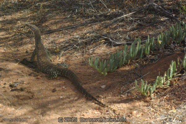 - Goulds Goanna, also known as Race Horse Goanna, near our camp site – Peak Charles camp ground