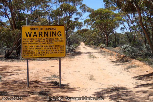 - Warning Sign before traveling the old Hyden – Norseman Road