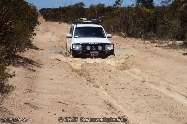 - The only sign of recent rains along the Marvel Loch – Forrestania Road