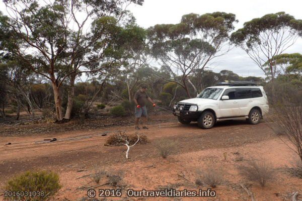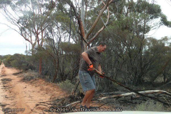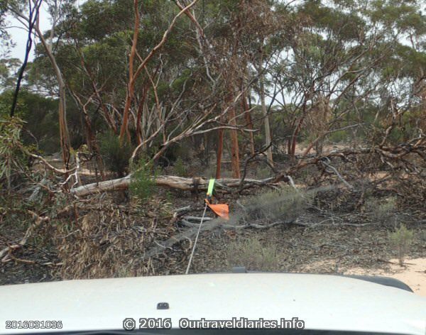 We had another enjoyable stay at the Great Western Motel in Norseman but now the time has come to leave and start our final leg home. Whenever we are out this way we like to travel the old Hyden – Norseman Road and do some tree clearing with the hope that one day this road can be traveled by others along it original path. It’s a hope not likely to be realised. Each storm that passes through the area fells more trees together with termites also making their contribution we have a never ending trail of trees.