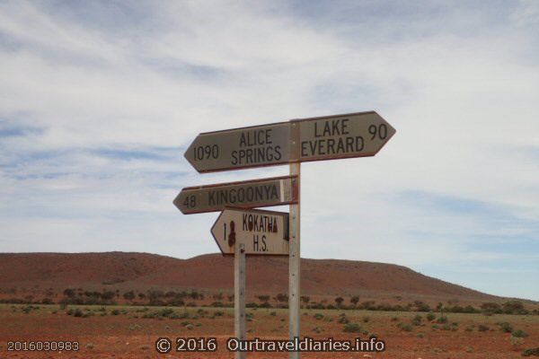 Before you get to Tarcoola you cross the Trans-Australian Rail line again. Remember – stop and check for trains before crossing. Driving into Tarcoola you can see the remains of old mines and when you arrive in town the dominating feature is the red Tarcoola Hotel. There was a sign on it saying opening in 2104 which had been changed to 2016 but it didn’t look anywhere near ready. A house on the right hand side of the ‘main street’ looked lived in and there was a huge painted sign on the road saying “Slow Down for Children”. There wasn’t much left of the petrol station and the hospital needed a lick of paint but it wasn’t a working hospital.