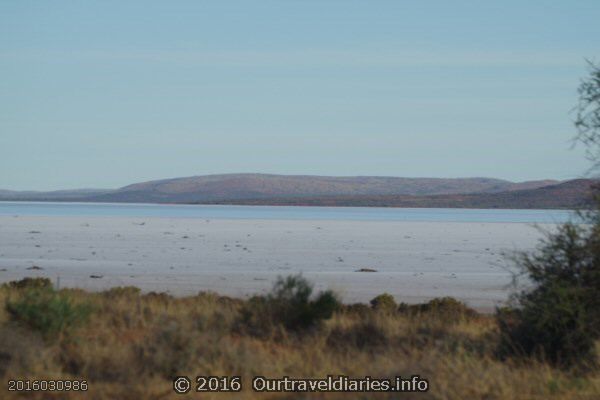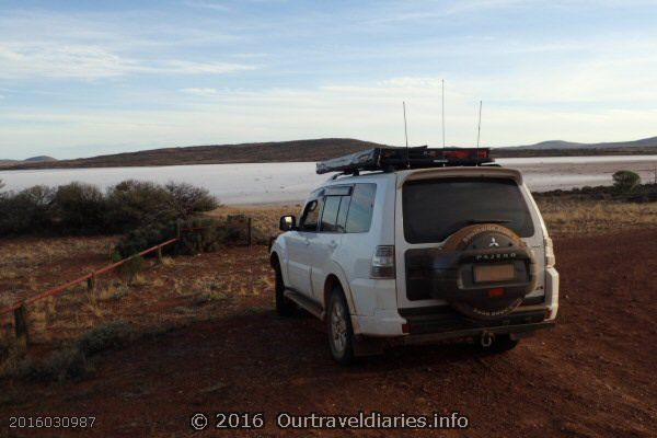 We saw more Brown Falcons on this trip than other trips in the last 24 months. Running out of daylight we started looking for somewhere to camp for the night. We saw a sign for the Lake Gairdner National Park so pulled in to check out the lake. Gee it’s large but is only about half the size of Lake Eyre. Now we’ve mentioned elsewhere in this diary about ‘hoons’ driving on salt lakes, well we have since found out that Lake Gairdner is home to speed week. Once a year racers participate in an organized event in an assortment of cars and bikes as they attempt their fasted speed – so not hooning. There is a set track which is 9 miles long, yes miles not kilometres. They’ve been holding the event at Lake Gairdner for the last 24 yrs and we’d missed this years event by a fortnight.