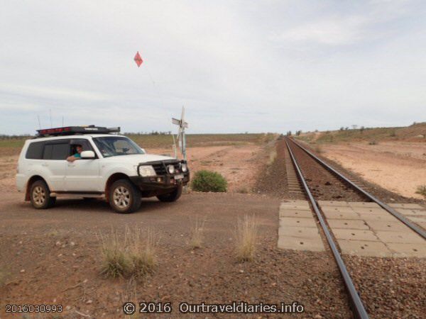 - Crossing the Trans Australian Railway near Tarcoola, SA
