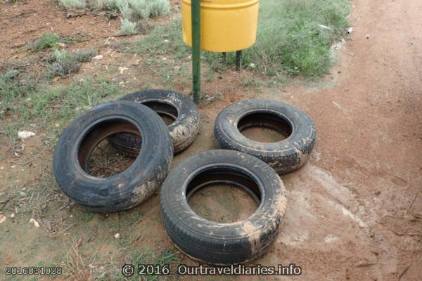 We came across a lovely flock of Pink and Gray Galahs snoozing in a dead tree. It made a nice photo against the overcast back drop. We love taking photos of nature but every now and then we see something that spoils the landscape. We still take a photo to show how thoughtless people are and as a contrast to beautiful sites we see on our travels. One such site was when we pulled into a parking bay throw out some rubbish and fill up the kettle for a cuppa. There next to the bin were some tyres that had been dumped which is illegal. Tyres have to properly disposed of and there is legislation governing the disposal of them. There was evidence to suggest these were from a commercial outlet. There’s a variety of environmental reason why tyres shouldn’t be dumped. Two important ones are;