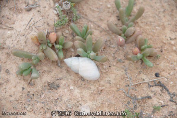 After leaving Nullabor we headed down to the Old Eyre Highway to do the section we missed back in August. Back on the bitumized Eyre Hwy we took a track down to Wigunda Cave. The view of the bight was impressive as are the Bunda Cliffs but you have to be careful here and all along the bight. The cliff edges are prone to breaking away and you could fall. These limestone cliffs were formed when Australia and Antarctica separated, some of the cliff layers contain fossilized marine life. You can see evidence of marine life here at the top of the cliffs, we saw plenty of shells embedded in the sand. As impressive as the scenic view is we have to ask ourselves how long will it last. The Great Australian Bight is already subject to exploration permits for large companies to sample the sea bed for oil. The question is will our current & future governments allow oil to be drilled in the marine park thus risking damage to this beautiful site, a site future generations may not be able to enjoy?