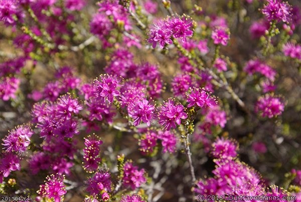 It’s disappointing that even on these tracks and roads, some less travelled than others, litterbugs abound. It would be fair to say most of the travellers along these tracks would be 4WDers which doesn’t bode well for the reputation of 4WDers if some are littering. We carried our accumulated rubbish ( 4 bags ) since starting the Holland Track to Coolgardie to dispose of and again we are now carrying rubbish until we reach a suitable bin. To see the broken bottles, beer cans stuck in trees, white ribbons (aka toilet paper) and other litter out here is annoying and sickening not to mention any harm litter could cause local wildlife. In contrast to the litter, there was still a lovely display of wildflowers along the way.