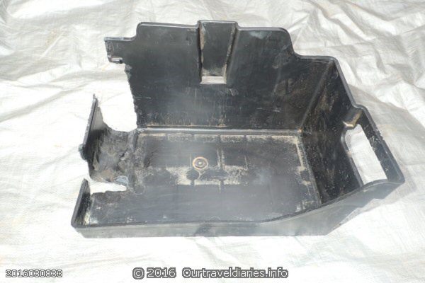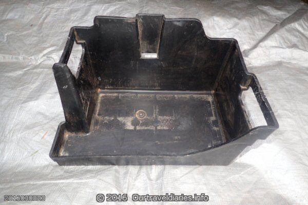 - The Mitsubishi Pajero battery sub tray in its modified state