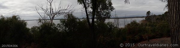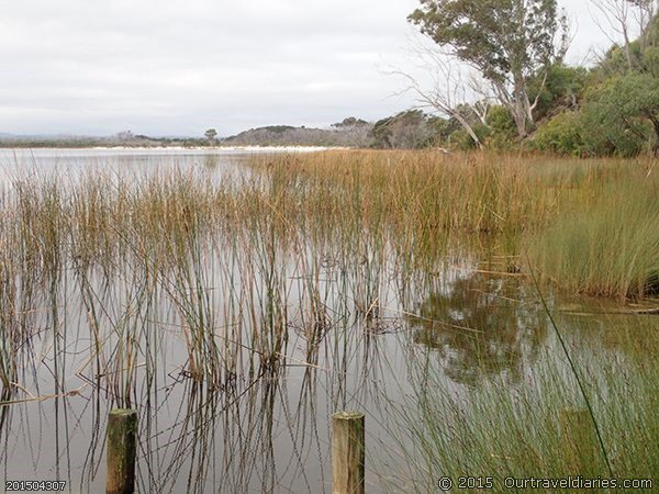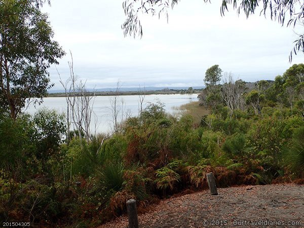 Although the rain has stopped the sky is overcast and the thunder is rolling loudly ? sounds like a storm is on its way. After we set up the awning we make a cuppa and relax. Before setting up camp we head off for a walk. On the way we see a pie dish beetle and then we reach the shore of Lake Jasper, gee it’s large and to think it’s fresh drinkable water!