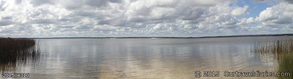 We try out the panoramic feature on our new camera taking some shots of the lake. The water is so clear that you can see the swamphen footprints on the bottom of the lake.