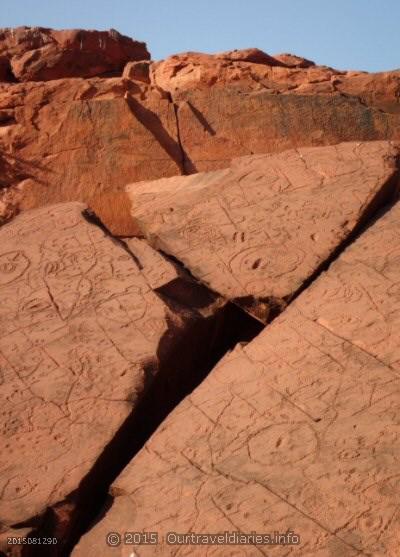 Our family and friends got an early start as they were flying home today and we weren’t far behind them. We’re heading toward Itirkawara (Chambers Pillar) on the second half of our trip. After leaving Alice Springs at 8.00 am we arrived at Itirkawara 4 ½ hrs later even though it was only 140 kms away. Along the way we called in at the Ewaninga Rock Carvings. These engravings are petro glyphs which have great meaning to the Arrernte people. They are worth looking at.