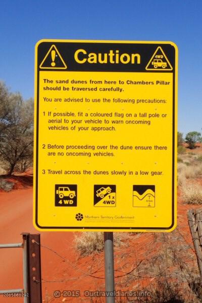 - Sign at the edge of Chambers Pillar Historical Reserve, NT.
