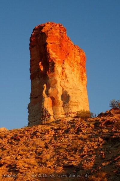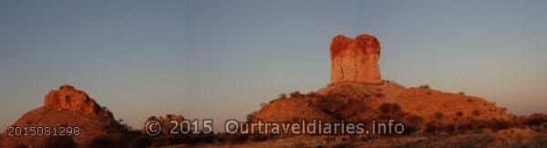 “Itirkawara refers to the powerful gecko; In the Dreamtime it’s said that the powerful gecko Itirkawara killed some of his ancestors and took a girl of the wrong skin group. They were banished to the desert were both turned into stone. Itirkawara became the pillar and the girl became Castle Rock, about 500 metres away.”