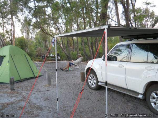 Back at camp a bungarra walks past out site and the local rangers drop by, they’re expecting it to get busy over the weekend. After they leave we notice march flies and once again the mad swatting starts while we set up our tent and read before making tea. Sunset at Lake Jasper was lovely. The only other wildllife we saw was a frog when we visited the toilets around 8.00pm. He was lovely, green with black stripes, but as is often the case, no camera! And now no march flies- peace 🙂