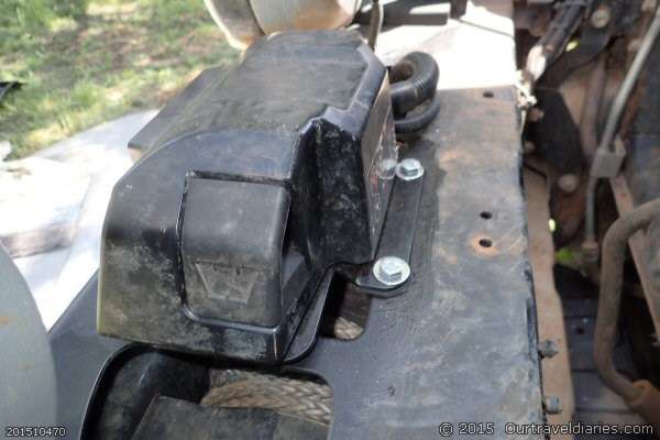 Access to tighten up the bolts holding the bracket to the bullbar was difficult so I had to remove the front grill of the Pajero to make it easier, although there still wasn’t a lot of room.