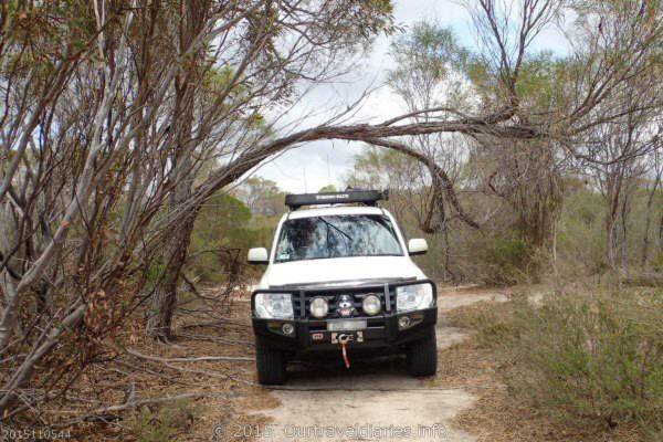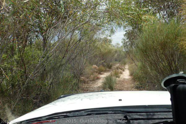 The landscape along Dunn’s Track is pretty flat in parts and there is rarely a shrub taller than 2mts while in other places it was overgrown. We’re traveling Dunn’s Track from the opposite direction to our last trip and we take the opportunity to get a photo of the car under the tree arch.