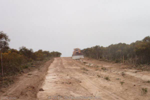 About 5 or 6 kms before Coujinup Track intersects West Point Road we came across a grader widening the road to the width of a 4 lane freeway. We stopped for a short yarn with the grader operator and he told us that there had been a fire about 20 kms north and they were widening the track as a fire break.